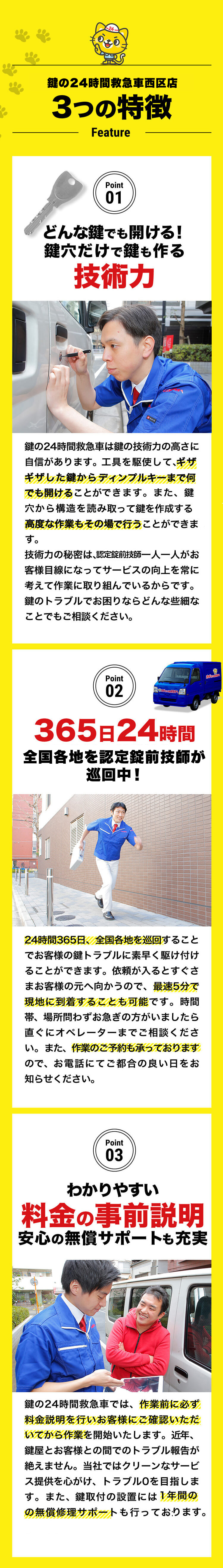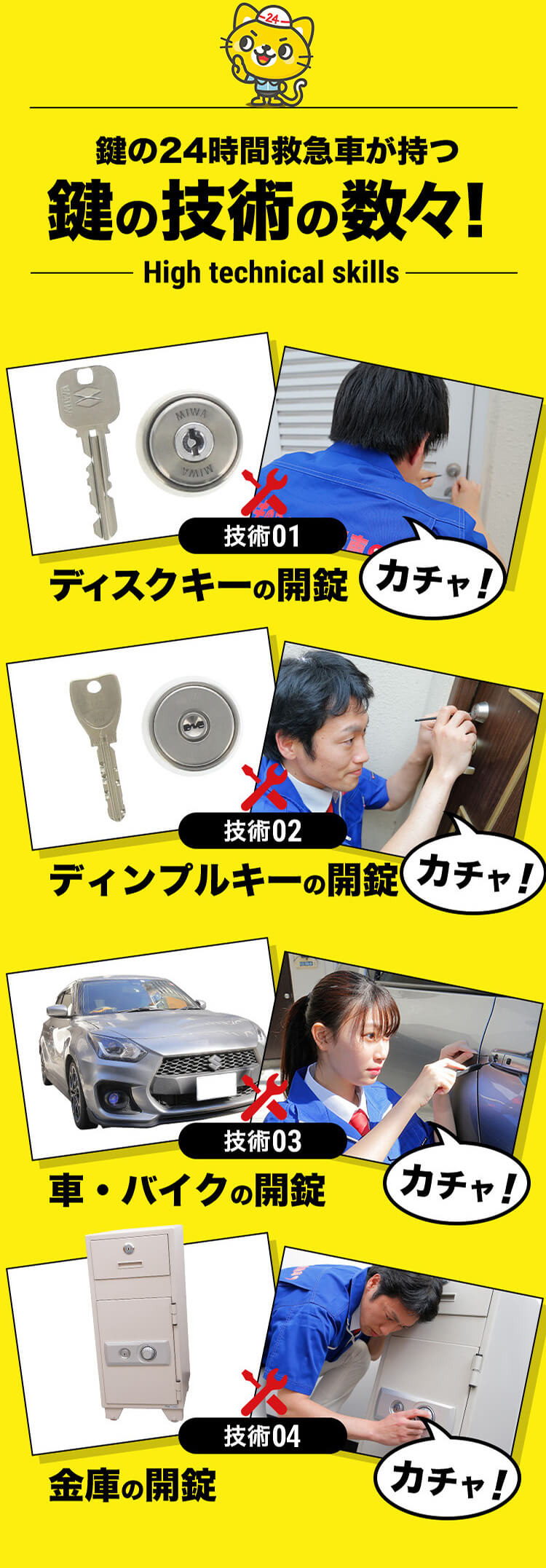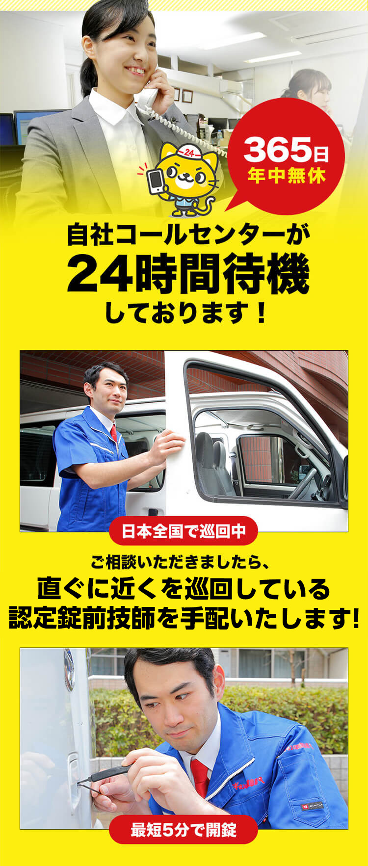 西区の「カギの出張24時間」は、靱本町や京町堀を迅速にカバー。地域のビジネスと生活を支えるため、24時間体制で確実な鍵サービスを提供します。お客様の緊急事態にも、迅速丁寧に対応します。